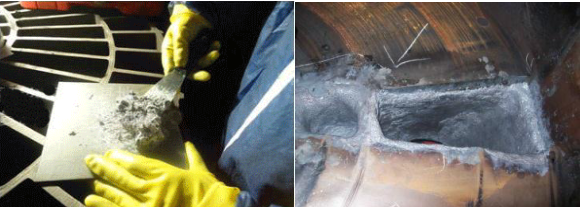 1、 設(shè)備及部件經(jīng)半年左右的使用周期之后普遍出現(xiàn)以上沖刷磨損現(xiàn)象,企業(yè)傳統(tǒng)解決方案一般為補(bǔ)焊修復(fù)或直接報(bào)廢更換,補(bǔ)焊之后由于熱應(yīng)力影響導(dǎo)致部件壽命大大縮短,一般應(yīng)用半年至一年左右便要報(bào)廢,大大增加了企業(yè)的維修維護(hù)成本;