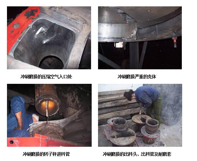 煤粉轉(zhuǎn)子秤進(jìn)料口、出料口、壓縮空氣入口、殼體等部位作為輸入和輸出煤粉的主要設(shè)備部件,該部位長(zhǎng)期受煤粉的沖擊沖刷,嚴(yán)重時(shí)可造成部件局部穿孔,使設(shè)備造成重大損傷并且影響煤粉計(jì)量和存在安全隱患。該類問(wèn)題長(zhǎng)期存在于設(shè)備使用過(guò)程中,常規(guī)的補(bǔ)焊修復(fù)工藝加速了部件的報(bào)廢速度,迫使企業(yè)投入高昂的費(fèi)用采購(gòu)備品備件,為此企業(yè)加大了運(yùn)營(yíng)成本。并且企業(yè)為此增加很多的停機(jī)時(shí)間,嚴(yán)重影響設(shè)備的安全連續(xù)化運(yùn)行。